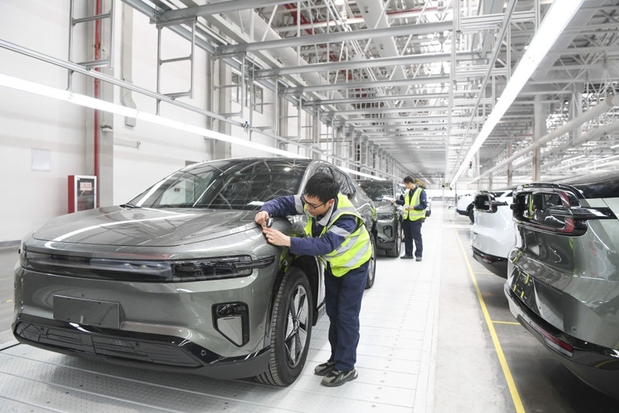 2024年3月14日,工作人員在長(zhǎng)安汽車重慶渝北新工廠總裝車間進(jìn)行整車下線前的檢查。新華社記者 王全超 攝