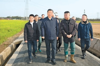 湖南是全國13個糧食主產(chǎn)省之一,水稻播種面積、總產(chǎn)量均居全國第一。當(dāng)天下午,習(xí)近平來到常德市鼎城區(qū)謝家鋪鎮(zhèn)港中坪村,走進(jìn)當(dāng)?shù)丶Z食生產(chǎn)萬畝綜合示范片區(qū),察看秧苗培育和春耕備耕進(jìn)展,聽取高質(zhì)量推進(jìn)農(nóng)業(yè)現(xiàn)代化情況介紹,并同種糧大戶、農(nóng)技人員、基層干部一筆一筆算投入產(chǎn)出賬。習(xí)近平強(qiáng)調(diào),我國有14億多人口,糧食安全必須靠我們自己保證,中國人的飯碗應(yīng)該主要裝中國糧。要建設(shè)好高標(biāo)準(zhǔn)農(nóng)田,推行適度規(guī)模經(jīng)營,加強(qiáng)政策支持和示范引領(lǐng),加大良種、良機(jī)、良法推廣力度,在精耕細(xì)作上下功夫,進(jìn)一步把糧食單產(chǎn)和品質(zhì)提上去,讓種糧也能夠致富,進(jìn)而吸引更多農(nóng)戶參與發(fā)展現(xiàn)代化大農(nóng)業(yè),真正把中國特色農(nóng)業(yè)現(xiàn)代化之路走穩(wěn)走扎實。
