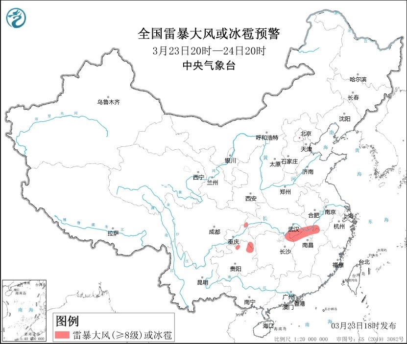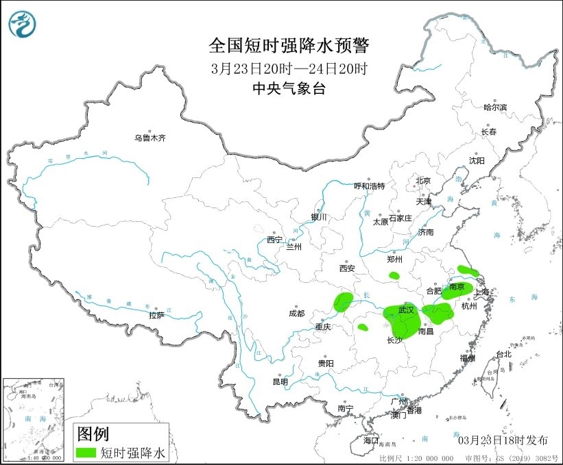 中央氣象臺(tái)3月23日18時(shí)繼續(xù)發(fā)布強(qiáng)對(duì)流天氣藍(lán)色預(yù)警