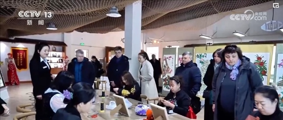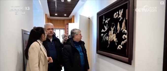 在同江,非物質文化遺產(chǎn)魚皮手工藝品也受到俄羅斯游客的喜愛。赫哲族用魚皮制作的手工藝品精美、大氣、寓意美好,展現(xiàn)了中國少數(shù)民族的獨特文化魅力。游客斯維特拉娜當場選購了一幅魚皮畫,準備帶回俄羅斯。