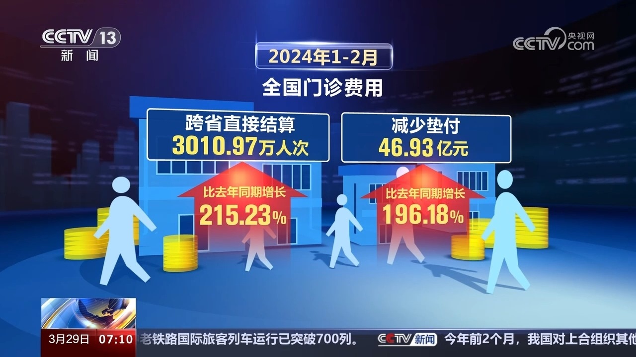央視網消息:記者從國家醫(yī)保局獲悉,今年1至2月,全國門診和住院跨省異地就醫(yī)直接結算超3200萬人次,減少百姓墊付超257億元。