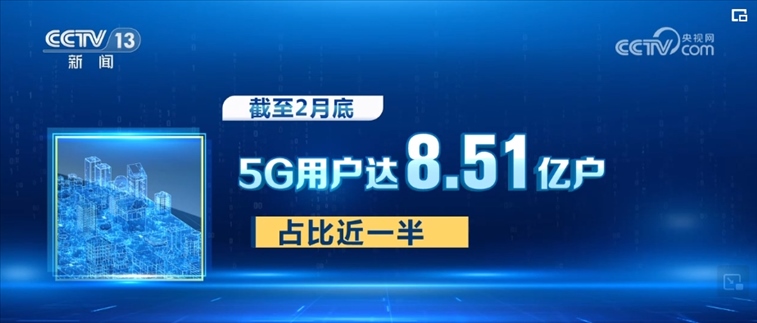 數(shù)據(jù)顯示,截至2月底,我國(guó)共發(fā)展移動(dòng)電話用戶17.46億戶,其中,5G用戶達(dá)8.51億戶,占比近一半,超過4G用戶數(shù)近1億。