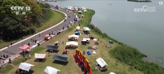 周末,在杭州拱墅運(yùn)河體育公園的露營(yíng)區(qū),不少市民扎起輕便的帳篷,便攜桌上擺滿(mǎn)了水果零食。