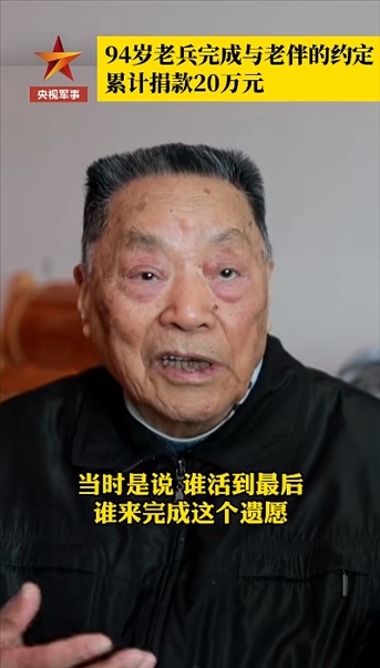 94歲老兵曾讓泉,78歲簽下捐贈眼角膜協(xié)議,85歲開始捐款,至今共計20萬元。曾讓泉說,老伴2014年走了,當(dāng)時約定誰活到最后誰來完成每年省下錢來捐款這個遺愿。