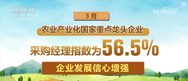 一季度,我國(guó)鄉(xiāng)村產(chǎn)業(yè)發(fā)展勢(shì)頭良好,全國(guó)規(guī)模以上農(nóng)副食品加工業(yè)增加值同比增長(zhǎng)3.3%。3月,農(nóng)業(yè)產(chǎn)業(yè)化國(guó)家重點(diǎn)龍頭企業(yè)采購(gòu)經(jīng)理指數(shù)為56.5%,企業(yè)發(fā)展信心增強(qiáng)。鄉(xiāng)村休閑旅游業(yè)持續(xù)升溫,農(nóng)產(chǎn)品電子商務(wù)較快增長(zhǎng)。