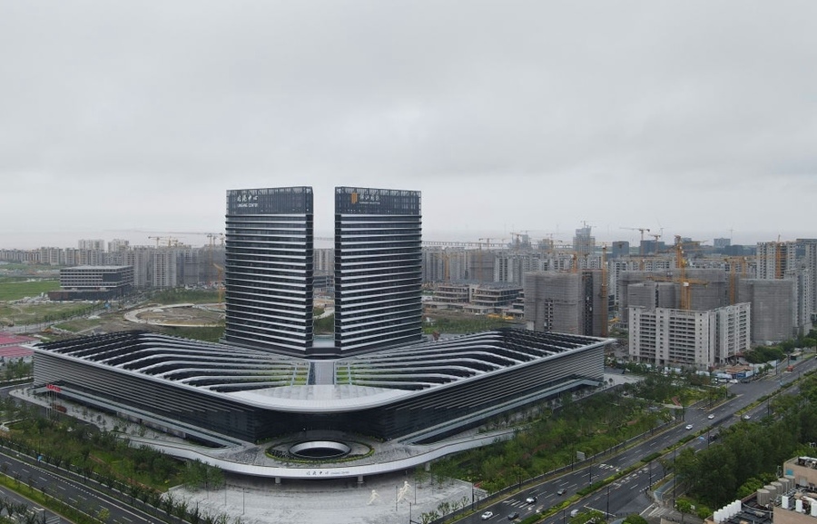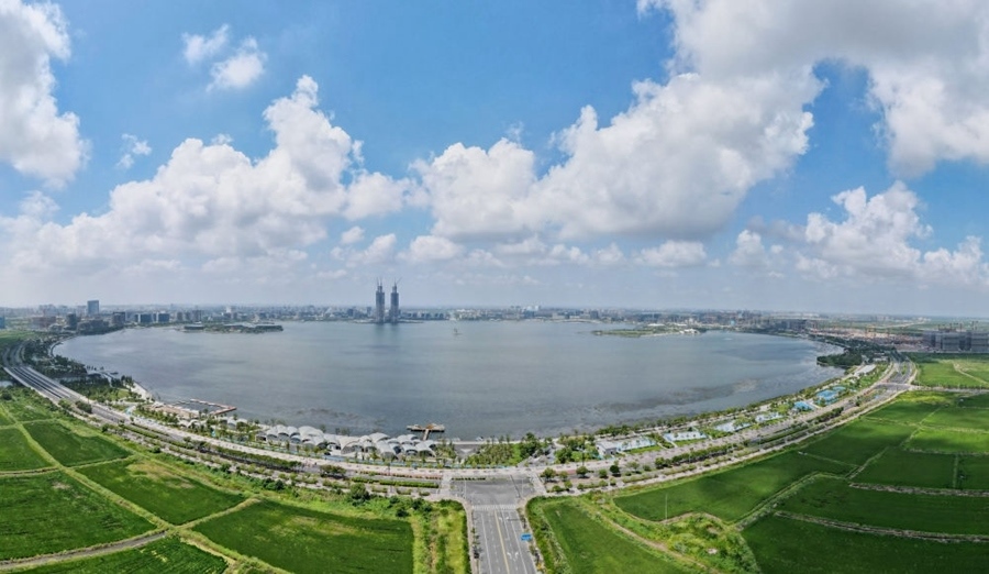 這是中國(上海)自由貿(mào)易試驗區(qū)臨港新片區(qū)滴水湖(無人機(jī)全景照片,2023年9月6日攝)。