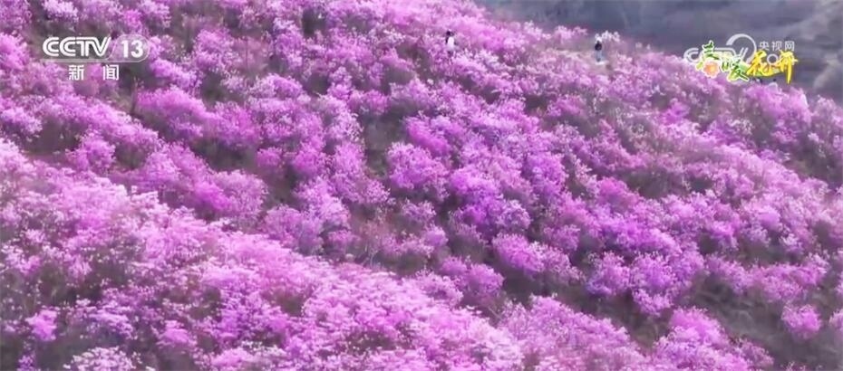 這里是遼寧省鞍山市岫巖滿族自治縣的黃嶺村,映山紅迎春綻放,粉紅色的花海綿延近十里,在山巒中鋪開,燦若云霞。一團(tuán)團(tuán)、一簇簇色彩艷麗的花朵,與高山叢林交相輝映,蔚為壯觀。各方游客紛至沓來,感受春日浪漫、定格美好瞬間。預(yù)計(jì)這里的花期將持續(xù)到4月底。