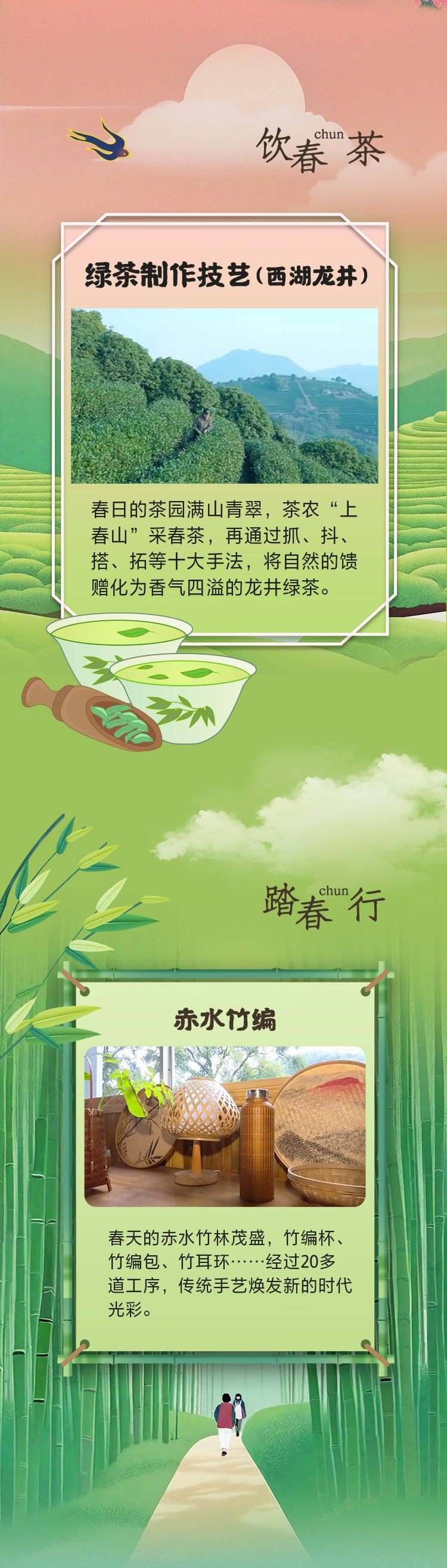 春花爛漫,踏春而行;茶香四溢,品味人生;竹林漫步,心隨風(fēng)靜;感悟春光,詩情畫意;草長鶯飛,紙鳶翩躚……賞春花、上春山、享春光,讓我們抓住春天的尾巴,與非遺國潮來一場美麗的邂逅!