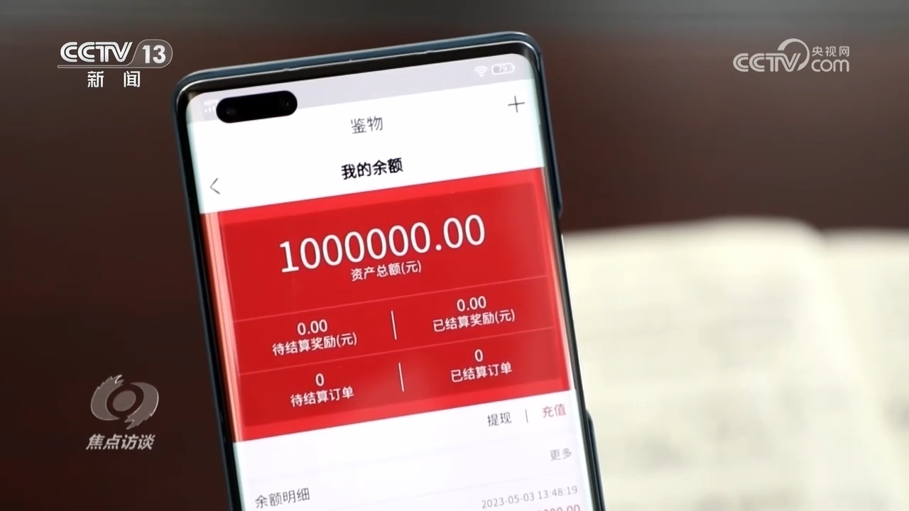 嚴(yán)女士:“我看到定金已經(jīng)打到我的‘鑒物’APP賬戶里面了,客服說(shuō)是不能提現(xiàn)的,要交兩萬(wàn)塊錢(qián)的保證金,就是說(shuō)我現(xiàn)在打了兩萬(wàn)塊錢(qián),一家就成了富人,102萬(wàn)就可以從里面提取出來(lái)了?!?/p>