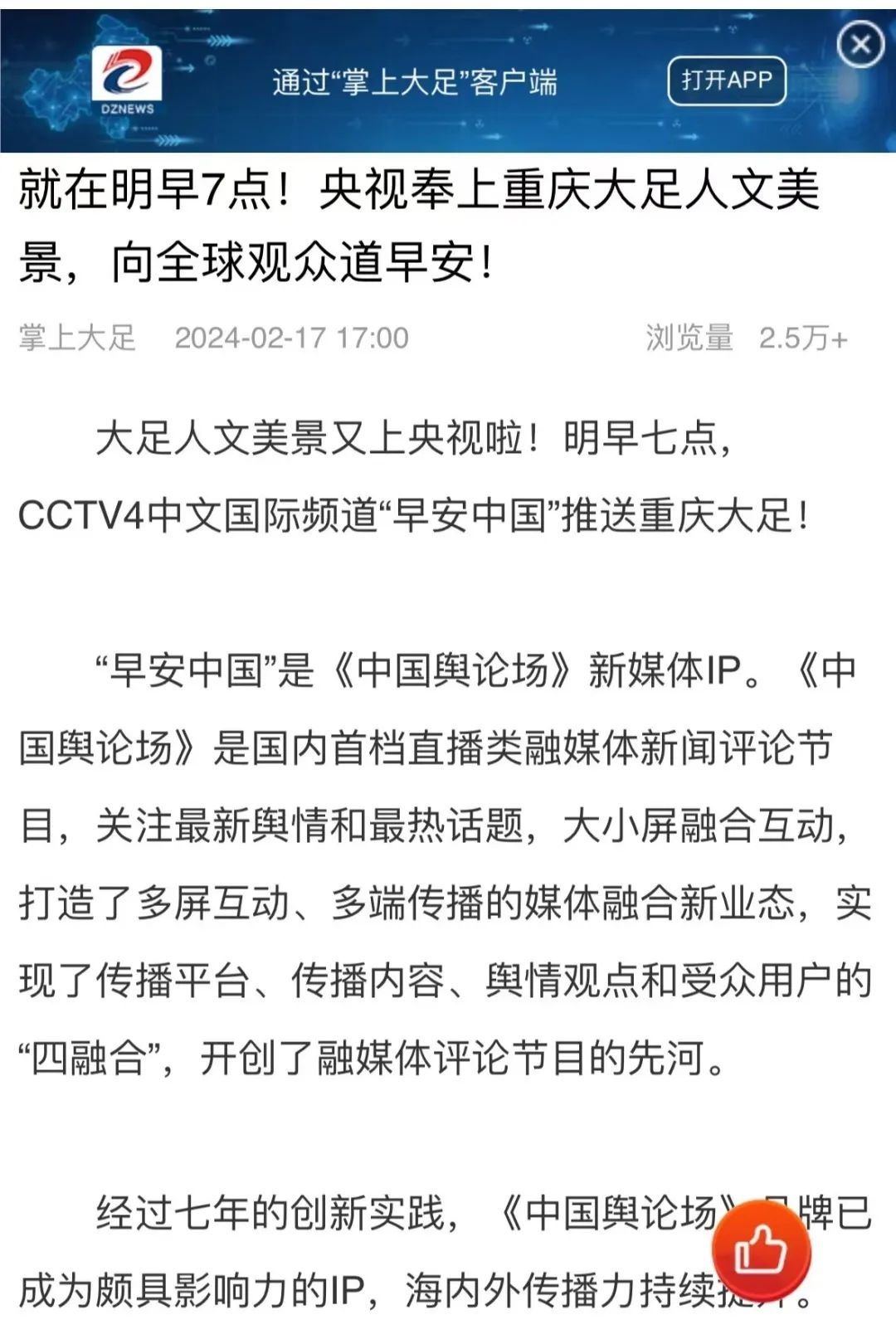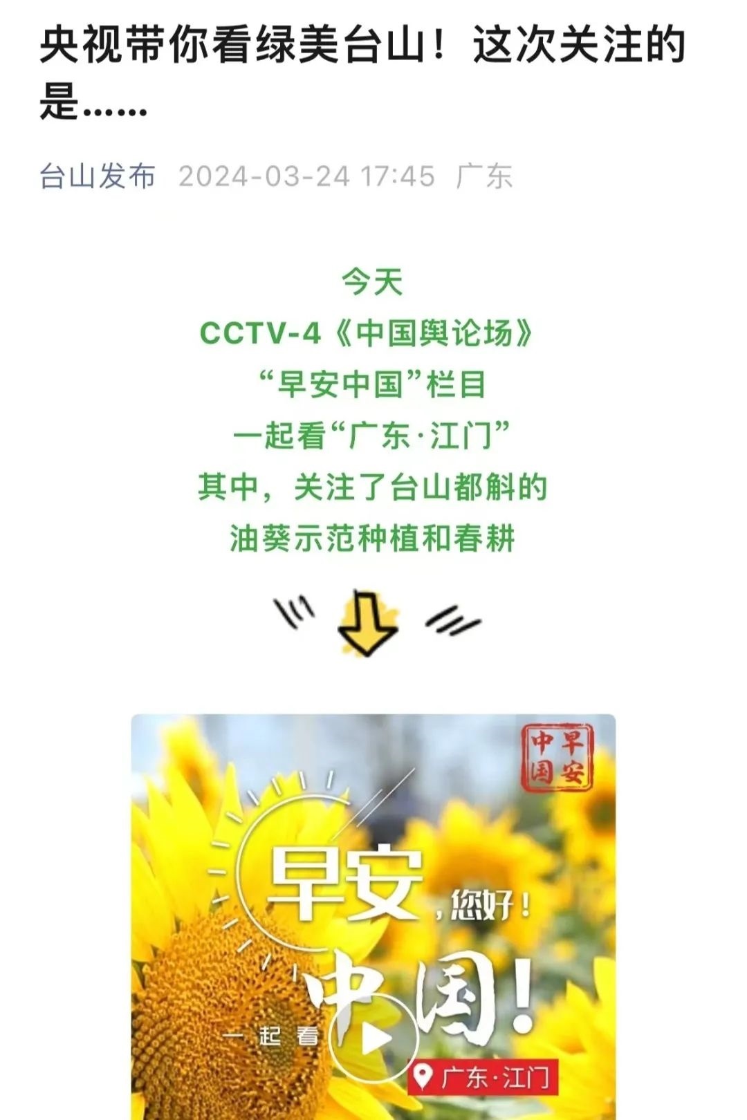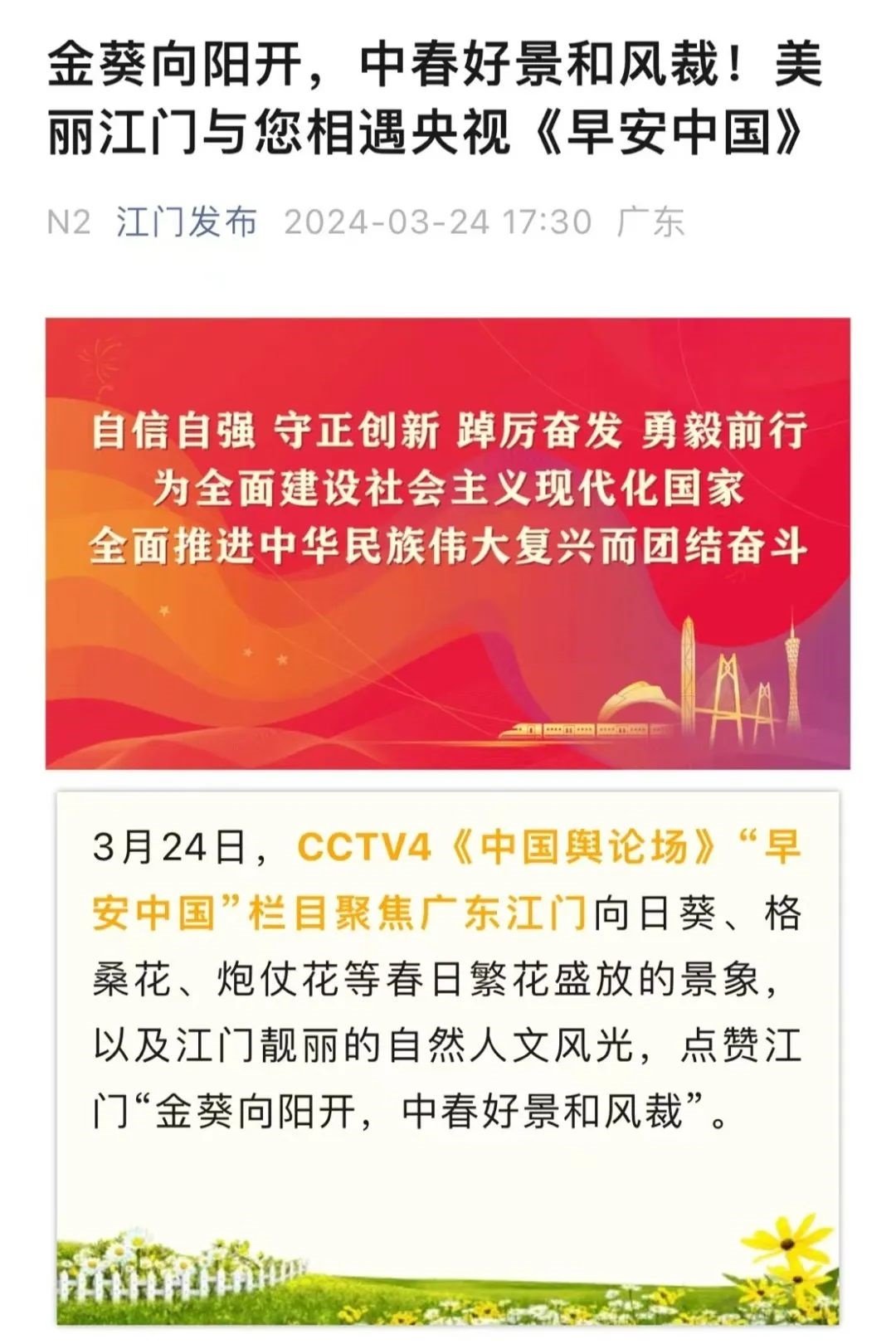 “央視帶你看綠美臺(tái)山,這次關(guān)注的是......”“就在明早7點(diǎn)!央視奉上重慶大足人文美景,向全球觀眾道早安!”“央視聚焦!徐州,有美景,有年味”“金葵向陽開,中春好景和風(fēng)裁!美麗江門與您相遇央視《早安中國》”……越來越多的地方政府伸出橄欖枝,希望《早安中國》多“來”當(dāng)?shù)匾挥[好風(fēng)光。