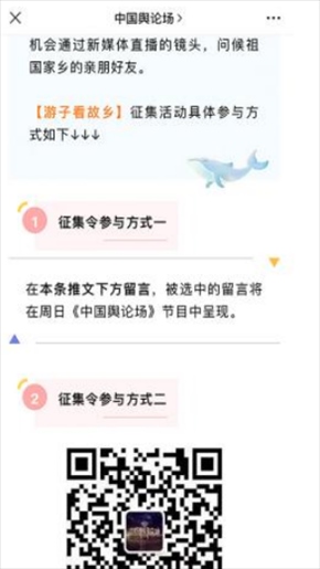 主創(chuàng)團(tuán)隊(duì)充分考慮到這些背井離鄉(xiāng)、愛國戀家的海外華僑華人的迫切需要,著力突出《早安中國》的互動(dòng)性,將更多時(shí)間、更多機(jī)會(huì)給到他們。網(wǎng)友希望看到祖國的哪些美景,哪個(gè)地方呼聲最高,哪個(gè)地方就成為了《中國輿論場(chǎng)》大小屏直播內(nèi)容的一個(gè)節(jié)目版塊。
