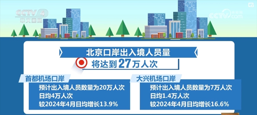 預(yù)計(jì),北京首都機(jī)場(chǎng)口岸、大興機(jī)場(chǎng)口岸日均出入境人員將分別達(dá)到4萬(wàn)人次、1.4萬(wàn)人次,較本月分別增長(zhǎng)13.9%、16.6%。受第135屆廣交會(huì)疊加免簽政策實(shí)施等因素影響,廣州“五一”假期出入境客流預(yù)計(jì)約22萬(wàn)人次,同比增長(zhǎng)102%。