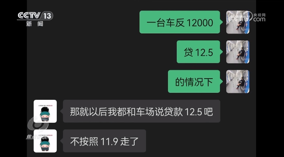 所謂物流公司內(nèi)部的一段聊天記錄顯示,一位司機(jī)購(gòu)買的一臺(tái)車,物流公司的人和貸款公司一起運(yùn)作,把原本應(yīng)該是11.9萬(wàn)元的貸款總額提高到12.5萬(wàn)元,物流公司人員從中可以獲取12000元的返利。