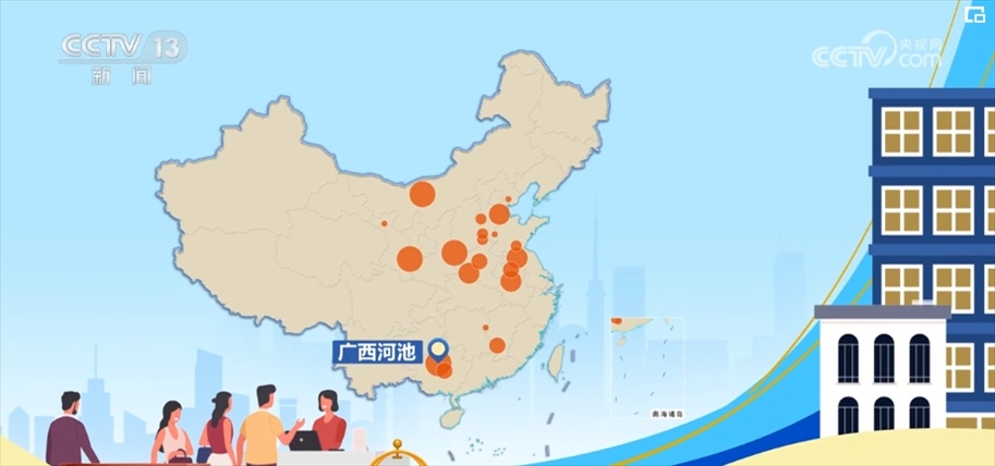 大家都去哪兒了?通過分析平臺上335個目的地的同比增幅數(shù)據(jù)后,找到了2024年“五一”最受歡迎的小眾旅游目的地。在這張熱力圖上,標(biāo)注的是增幅前20的小眾目的地城市,圓圈大小表示增幅的高低,排名第一的廣西河池的酒店和票務(wù)預(yù)訂同比增長近四倍,而分布在10個不同省份的這20個城市,同比增幅都在一倍以上。