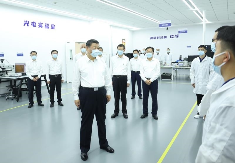 “都很有朝氣?。 痹谘邪l(fā)車間、光電實(shí)驗(yàn)室,看到企業(yè)研發(fā)人員都是年輕人,總書記十分欣慰。