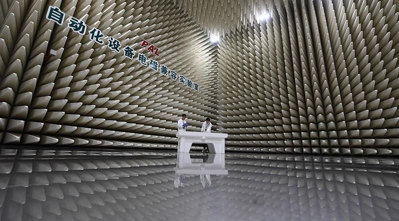 2023年7月7日,在南瑞集團(tuán)有限公司自動(dòng)化設(shè)備電磁兼容實(shí)驗(yàn)室,科研人員在進(jìn)行輻射發(fā)射實(shí)驗(yàn)準(zhǔn)備工作。