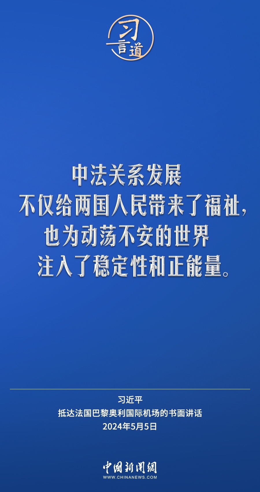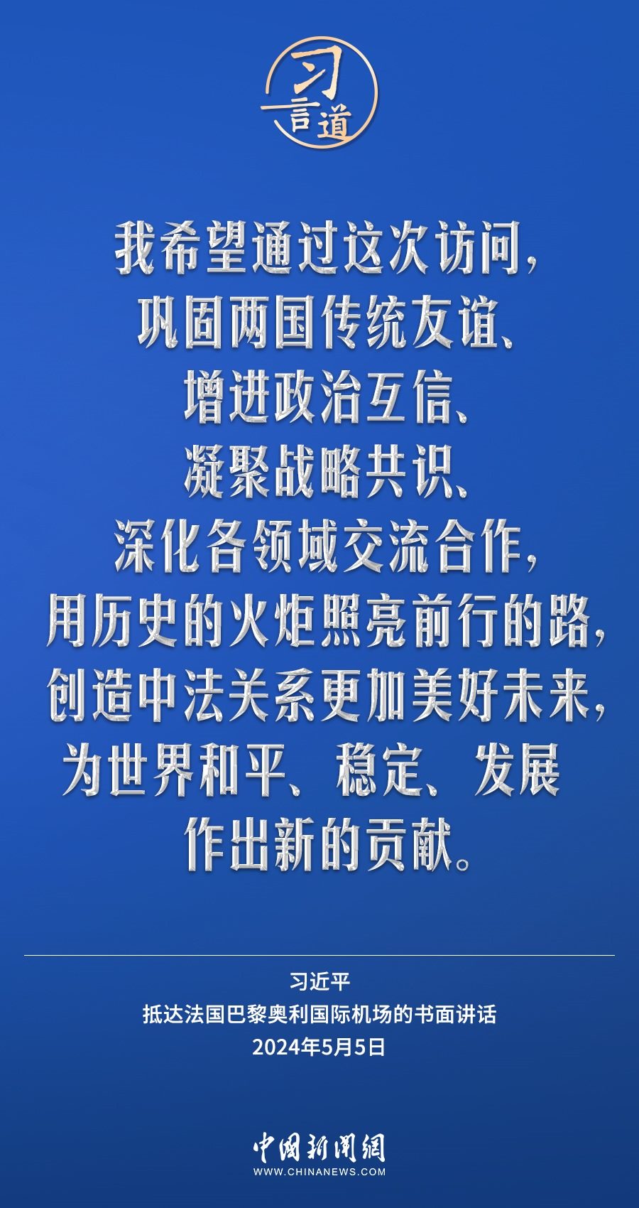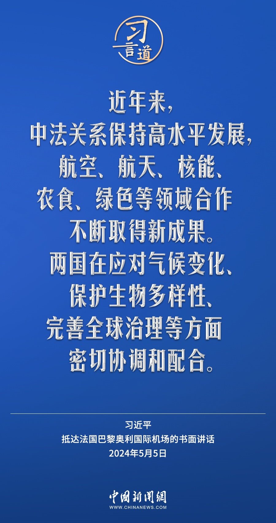 當?shù)貢r間5月5日下午,國家主席習(xí)近平抵達巴黎,開始對法國進行國事訪問。在抵達法國巴黎奧利國際機場的書面講話中,習(xí)近平指出——
