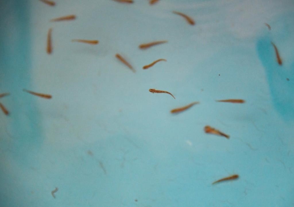 這是5月5日在四川省崇州市雞冠山冷水魚(yú)科研基地拍攝的川陜哲羅鮭子二代仔魚(yú)。新華社記者 王曦 攝