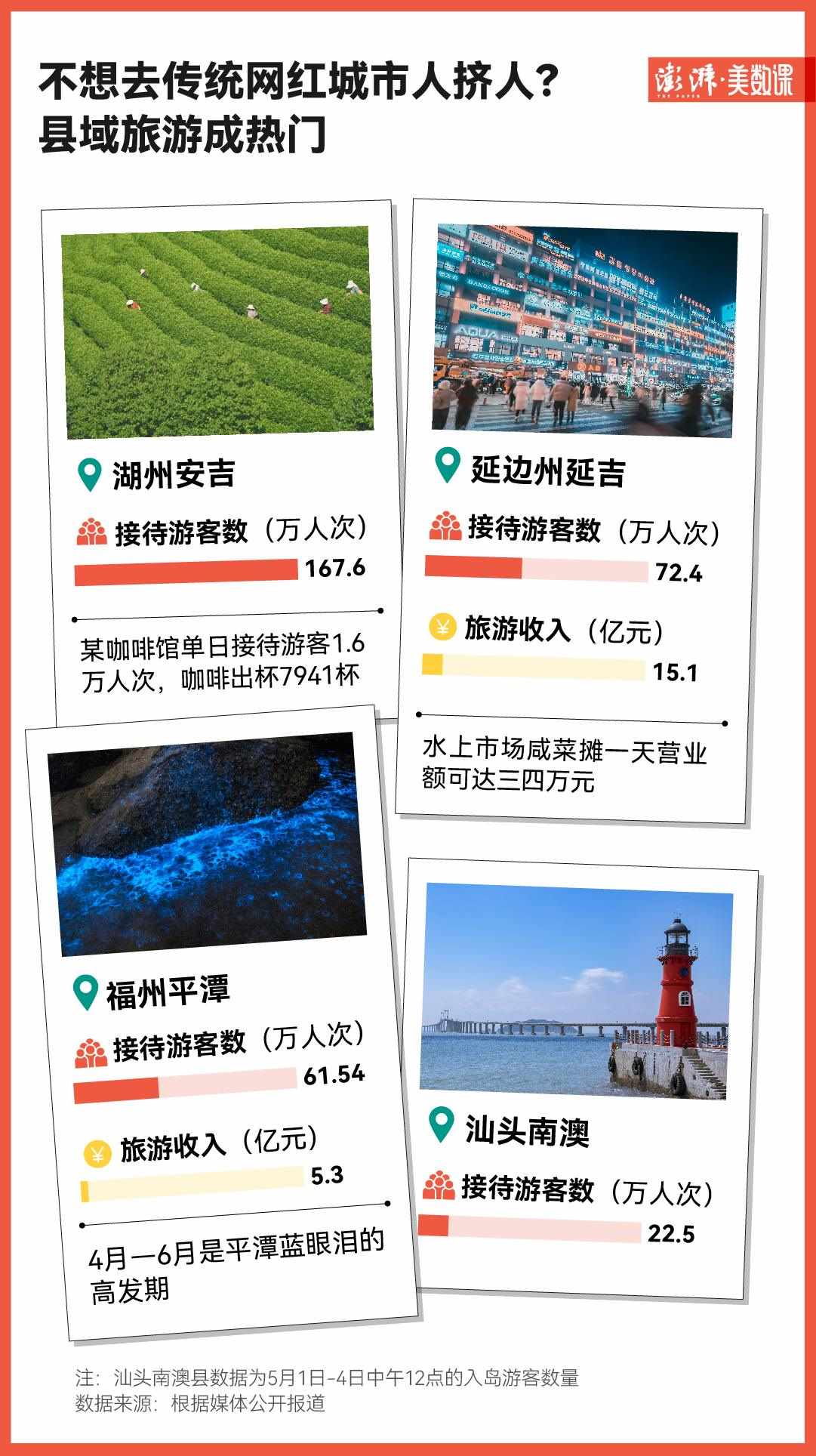 不僅如此,旅游下沉化的趨勢已經(jīng)來到了縣級市。湖州安吉在這個“五一”假期就收獲了167.6萬人次的游客數(shù)量。據(jù)“安吉旅游”公眾號,當?shù)啬晨Х瑞^單日接待游客1.6萬人次,咖啡出杯7941杯。