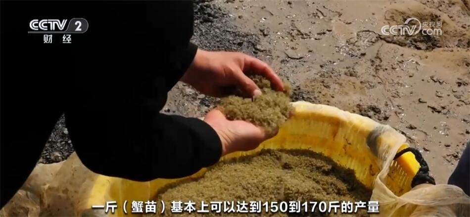 蟹苗采購商稱:“去年我們拿了1000多斤,一斤蟹苗可以達到150—170斤的產(chǎn)量,今年我們也拿了2000多斤蟹苗。”