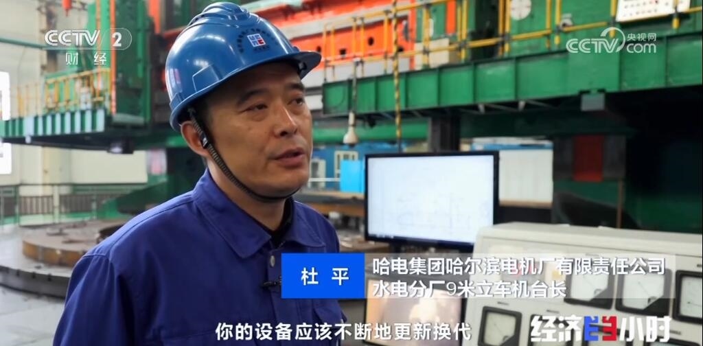 哈電集團(tuán)哈爾濱電機(jī)廠有限責(zé)任公司水電分廠9米立車(chē)機(jī)臺(tái)長(zhǎng)杜平介紹,以前加工精度可能在毫米級(jí),1毫米或者2毫米,現(xiàn)在加工精度可以精確到0.1毫米,一根頭發(fā)絲是0.07毫米,它就是比一根頭發(fā)絲稍微多了一點(diǎn)點(diǎn)。