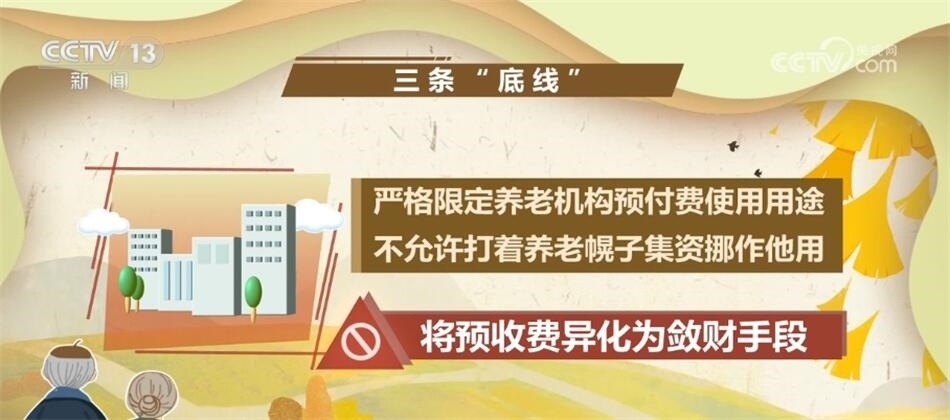 發(fā)布會上,民政部相關負責人介紹,《意見》還明確了三條安全“底線”:第一條是嚴禁養(yǎng)老機構(gòu)超過床位供給能力“一床多賣”;第二條是嚴格限定養(yǎng)老機構(gòu)預付費使用用途,不允許打著養(yǎng)老幌子集資挪作他用,將預收費異化為斂財手段;第三條是明確不得以承諾還本付息、給予其他投資回報等方式,誘導老年人及家屬交費,這是典型的非法集資行為。