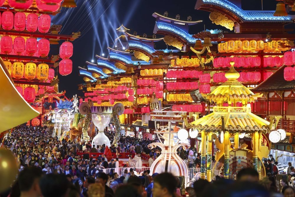 人們在新疆烏魯木齊市水磨溝區(qū)天山明月城游玩(2024年5月4日攝)。新華社記者 胡虎虎 攝