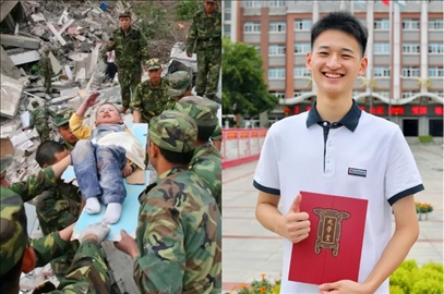 左圖為2008年5月13日,汶川地震后,郎錚被救出。(楊衛(wèi)華 攝)