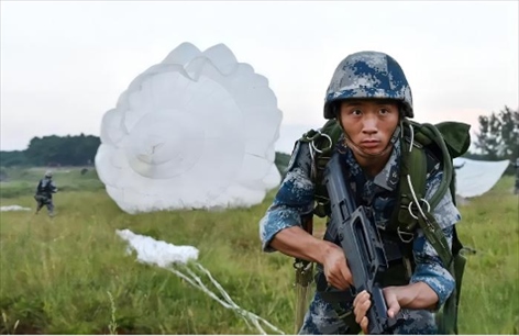 ?上圖為2008年汶川地震后,空降兵救援部隊撤離時,程強舉著“長大我當空降兵”的標語;