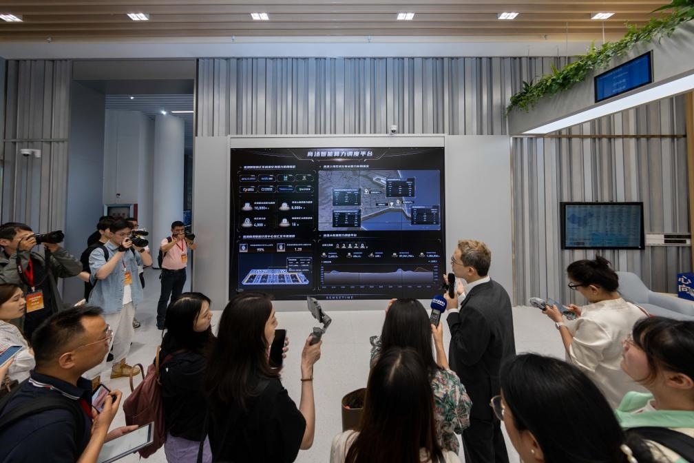 ?5月23日,大模型企業(yè)、智象未來(lái)生態(tài)合作部總經(jīng)理沈偉峰為采訪團(tuán)介紹運(yùn)用大模型文生視頻。新華社記者 王翔 攝