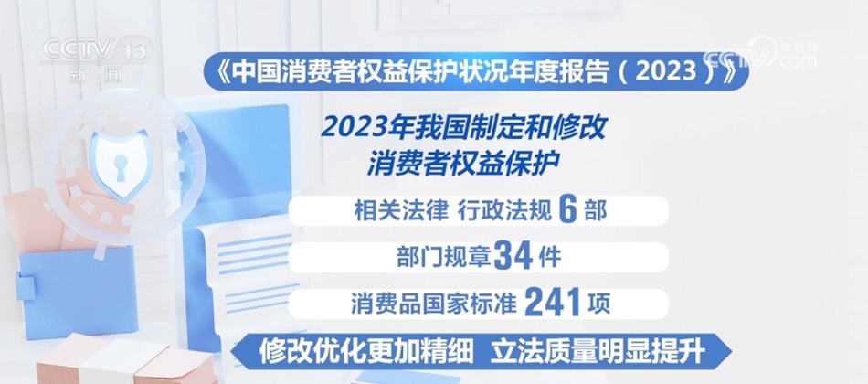 年度報告顯示,2023年我國制定和修改了消費者權益保護相關法律、行政法規(guī)6部、部門規(guī)章34件、消費品國家標準241項,修改優(yōu)化更加精細,立法質量明顯提升。