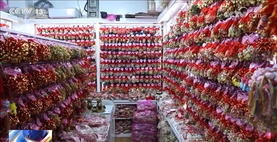 央視網(wǎng)消息:臨近端午節(jié),在浙江義烏,帶有端午元素的五彩繩、手鏈、香囊等各色商品銷售火爆,其中一些蘊(yùn)含龍?jiān)亍⒑迷⒁獾纳唐犯鞘艿绞袌?chǎng)的歡迎。