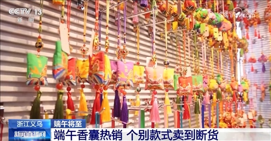 端午節(jié)人們還有佩戴香囊的習(xí)慣,來祈求平安健康。義烏市場(chǎng)上的香囊也同樣銷售火熱,個(gè)別款甚至已經(jīng)脫銷。
