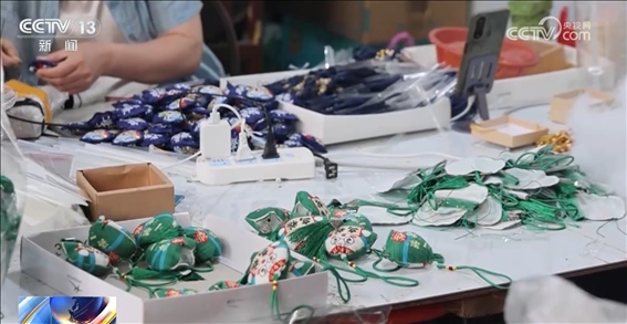 在另一家企業(yè),負(fù)責(zé)人陸蘭娟正在整理今年最后一批端午節(jié)香囊的訂單。與去年相比,今年她家的款式上新更多,5月中旬前各地批發(fā)商不斷返單。