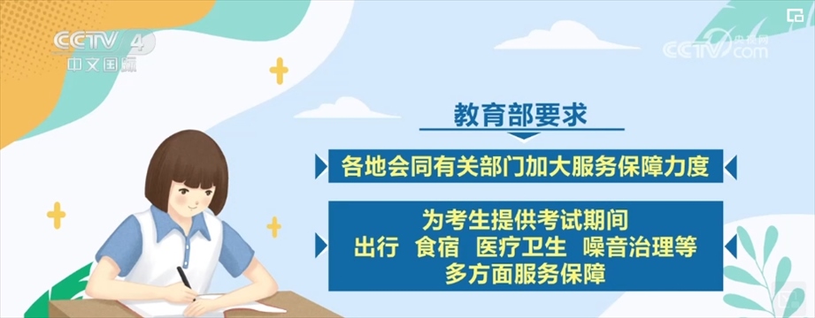 教育部要求各地會(huì)同有關(guān)部門(mén)加大服務(wù)保障力度,為考生提供考試期間出行、食宿、醫(yī)療衛(wèi)生、噪音治理等多方面服務(wù)保障。繼續(xù)做好殘疾人等特殊困難群體的考試服務(wù),為11?。▍^(qū))共15名盲人考生專(zhuān)門(mén)命制盲文試卷,為1.1萬(wàn)余名殘障考生提供合理考試便利。?
