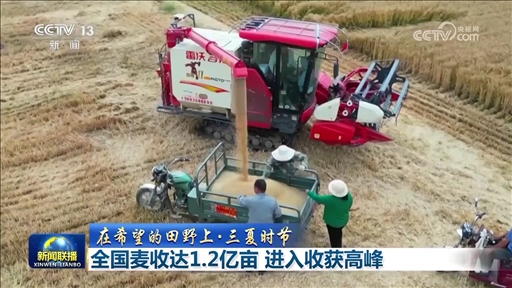 央視網(wǎng)消息(新聞聯(lián)播):農(nóng)業(yè)農(nóng)村部最新數(shù)據(jù)顯示,當(dāng)前全國麥?zhǔn)者_1.2億畝,進度過三成半,已進入收獲高峰。