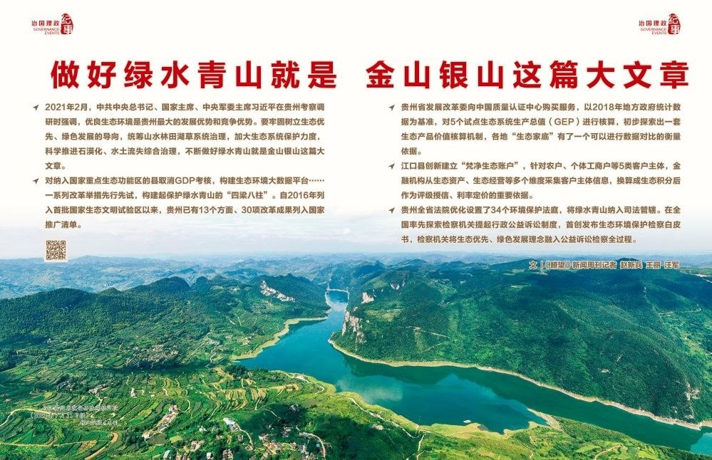 2022年初,《國務(wù)院關(guān)于支持貴州在新時(shí)代西部大開發(fā)上闖新路的意見》出臺(tái),正式賦予貴州生態(tài)文明建設(shè)先行區(qū)的戰(zhàn)略定位,要求貴州堅(jiān)持生態(tài)優(yōu)先、綠色發(fā)展,筑牢長江、珠江上游生態(tài)安全屏障,科學(xué)推進(jìn)石漠化綜合治理,構(gòu)建完善生態(tài)文明制度體系,不斷做好綠水青山就是金山銀山這篇大文章。