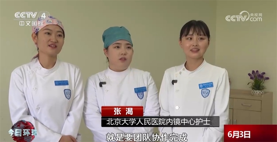 北京大學(xué)人民醫(yī)院內(nèi)鏡中心護(hù)士張渴稱(chēng):“因?yàn)槔细蛇@個(gè),知道下一步怎么做,就是要團(tuán)隊(duì)協(xié)作完成?!?/p>