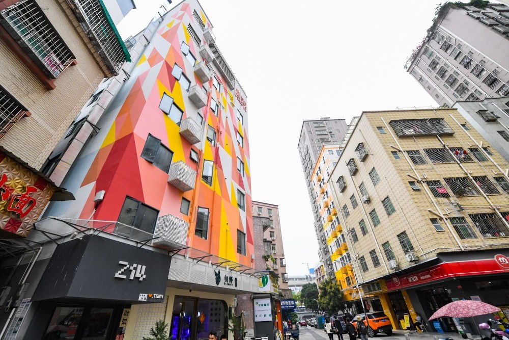 2023年4月2日在深圳市龍華區(qū)元芬村拍攝的改造后的青年公寓外立面(左)。近年來,深圳持續(xù)推進城中村住房規(guī)?;焚|(zhì)化改造提升,打造了元芬村等新型宜居人文社區(qū)。新華社記者 毛思倩 攝