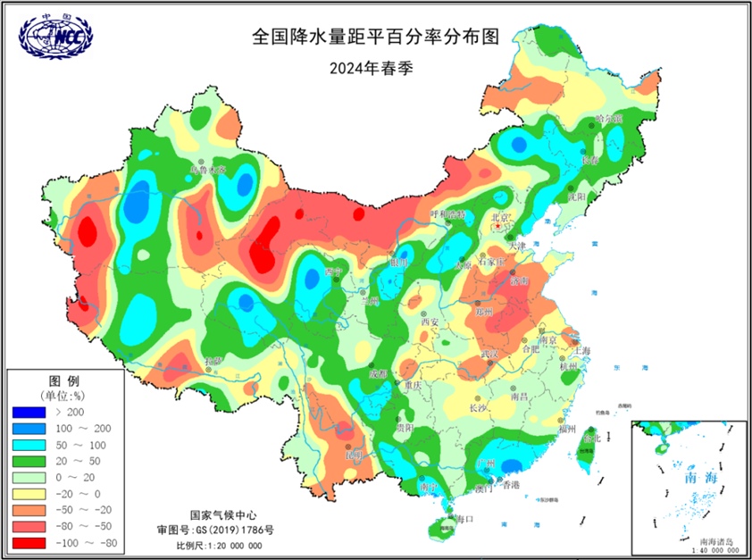央視網(wǎng)消息:2024年春季,全國氣候總體呈現(xiàn)暖濕特征。平均氣溫為歷史同期最高,南方多站日最高氣溫達(dá)到或超過歷史極值;北方冷空氣次數(shù)偏多,氣溫波動起伏大。全國降水量總體偏多,但空間分布不均。14次區(qū)域暴雨過程襲擊我國,較常年同期明顯偏多;南方強(qiáng)對流天氣頻發(fā),局地影響重;西南地區(qū)出現(xiàn)冬春連旱,進(jìn)入5月后緩解;4月以來,黃淮江淮地區(qū)氣象干旱露頭并發(fā)展,目前仍存在中度及以上等級氣象干旱;春季,西北太平洋及南海共生成兩個臺風(fēng),生成數(shù)量接近常年同期,無臺風(fēng)登陸我國。