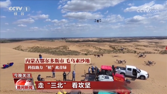 央視網(wǎng)消息:在內(nèi)蒙古毛烏素沙地,無人機飛播、機器人栽種正當(dāng)時,科技助力“植”此青綠。