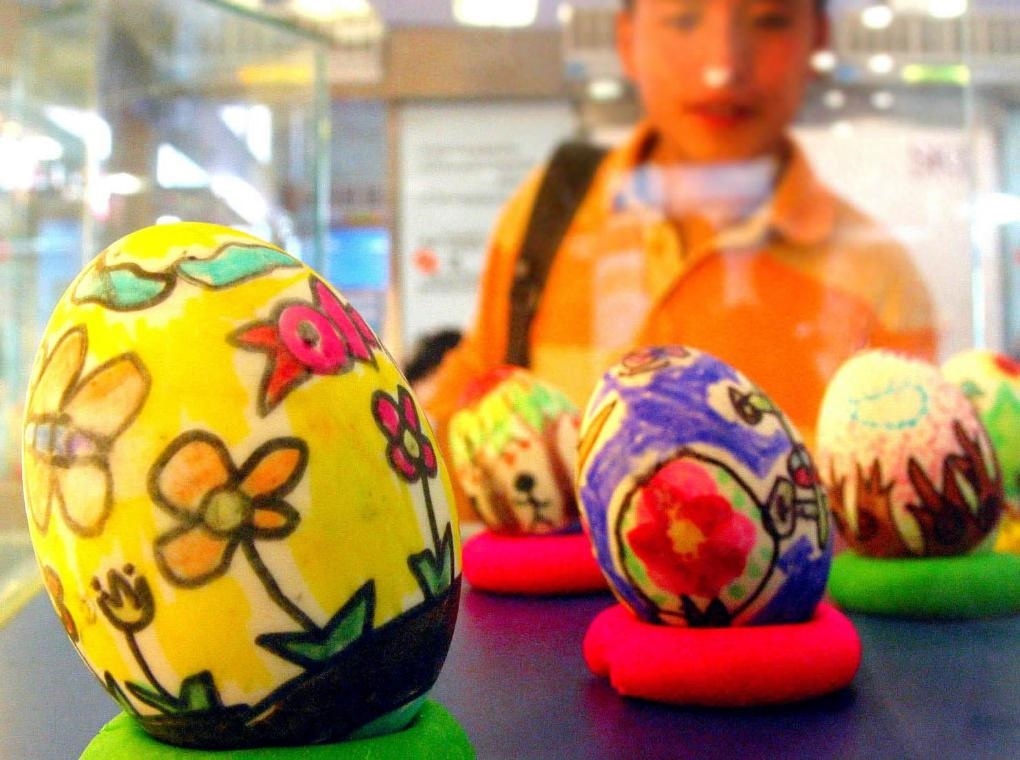 2004年6月22日,南京一商家展出的彩蛋引起人們的興趣。端午節(jié)吃鴨蛋是南京等地人們的傳統(tǒng)習俗。