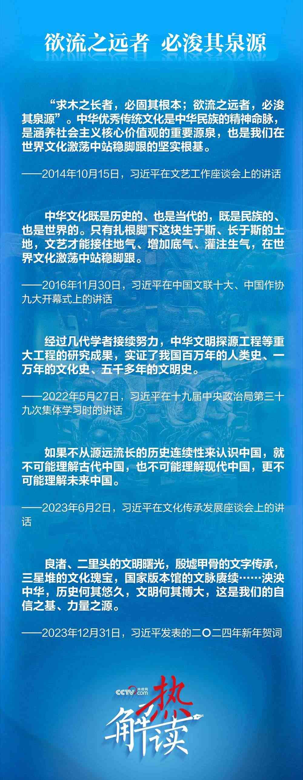 一件件文物、一處處文化古跡、一項(xiàng)項(xiàng)文化藝術(shù),串連起中華民族的文化史,蘊(yùn)藏著“何以中國(guó)”的文化力量。總書(shū)記對(duì)中華文明之源的關(guān)注,彰顯的正是他對(duì)推動(dòng)文化繁榮、建設(shè)文化強(qiáng)國(guó)的深刻思考和文化自信。