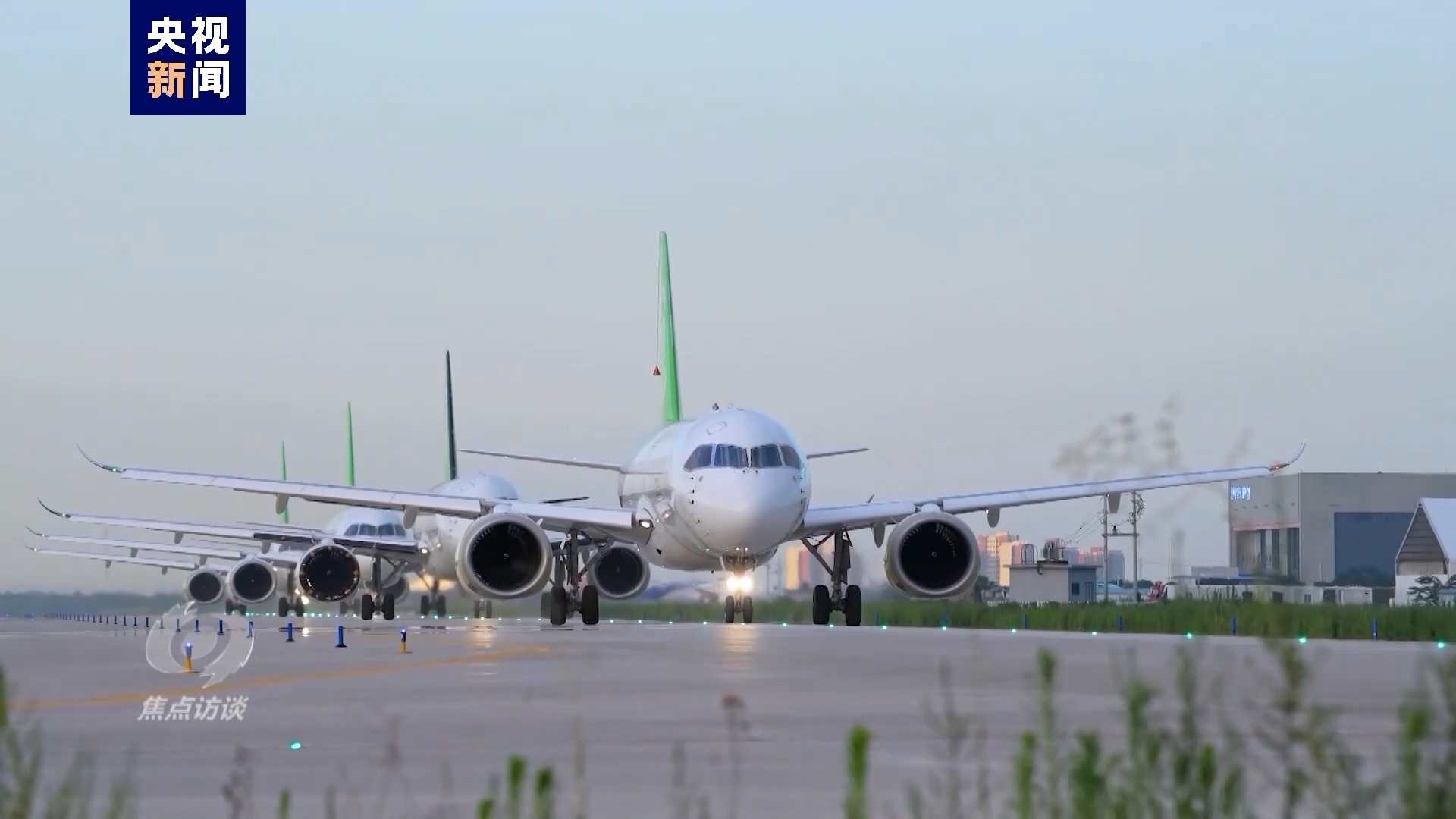 6月14日,國產(chǎn)大飛機C919再添新航線。當天上午,東航C919客機搭載162名旅客,從上海虹橋機場飛往廣州白云機場,正式開啟第四條商業(yè)定期航線。