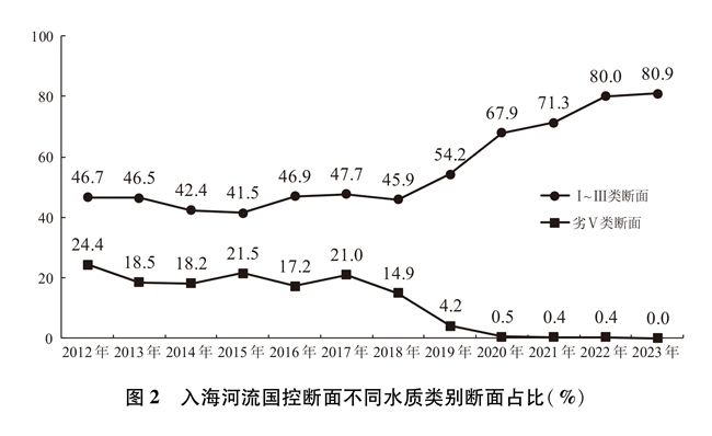 抓好入海河流污染防治。入海河流是陸源污染物輸入海洋的最重要途徑。中國積極提升城鎮(zhèn)污水處理質(zhì)效,建設(shè)改造雨污分流管網(wǎng),加強(qiáng)污水處理行業(yè)監(jiān)管,降低城鎮(zhèn)生產(chǎn)生活污水對入海河流水質(zhì)影響。2012年以來,沿海地區(qū)污水處理基礎(chǔ)設(shè)施建設(shè)顯著提速,地級以上城市污水處理廠基本完成一級A提標(biāo)改造。開展農(nóng)村環(huán)境整治,“十四五”以來,沿海省份新增完成1.7萬個(gè)行政村環(huán)境綜合整治,編制完成170個(gè)畜牧大縣畜禽養(yǎng)殖污染防治規(guī)劃,農(nóng)村生活污水治理率超過45%,大幅降低農(nóng)業(yè)農(nóng)村污水排放。著力破解流域氮排放過量的近岸海域水質(zhì)污染和富營養(yǎng)化問題,建立沿海、流域、海域協(xié)同一體的綜合治理體系,探索將總氮控制范圍向入海河流上游拓展,推動(dòng)入海河流實(shí)施“一河一策”總氮治理。2012-2017年中國入海河流國控?cái)嗝嫠|(zhì)整體保持穩(wěn)定并有所好轉(zhuǎn),2018年以后水質(zhì)整體大幅好轉(zhuǎn)。目前,入海河流國控?cái)嗝嫠|(zhì)優(yōu)良(Ⅰ~Ⅲ類)斷面數(shù)量約占整體的五分之四左右,喪失使用功能(劣Ⅴ類)斷面基本消除。