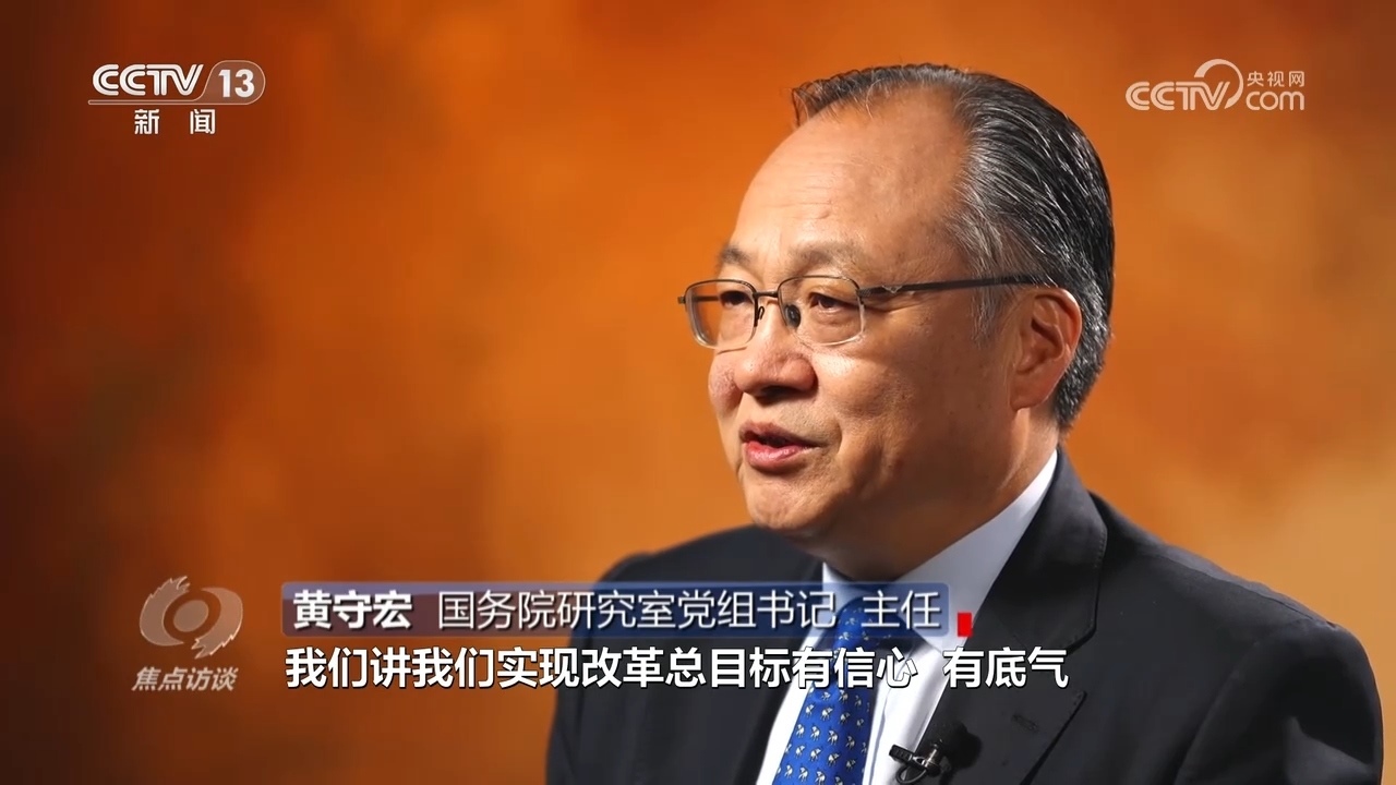 黃守宏:“在進一步全面深化改革總目標中,明確了到2035年的階段性改革目標,‘七個聚焦’的分領域改革目標,明確了到2029年完成《決定》提出的改革任務的要求,形成了在總目標的統(tǒng)領之下,有總有分、總分結合、體系完備的目標體系和推進改革的時間表、路線圖、任務書?!?/p>