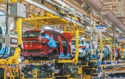 科技創(chuàng)新上汽臨港基地的柔性生產(chǎn)線(xiàn)。尚 清攝(人民視覺(jué))
