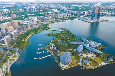 擴(kuò)大開(kāi)放上海自貿(mào)試驗(yàn)區(qū)臨港新片區(qū)滴水湖畔,鱗次櫛比的樓宇拔地而起。計(jì)海新攝(影像中國(guó))
