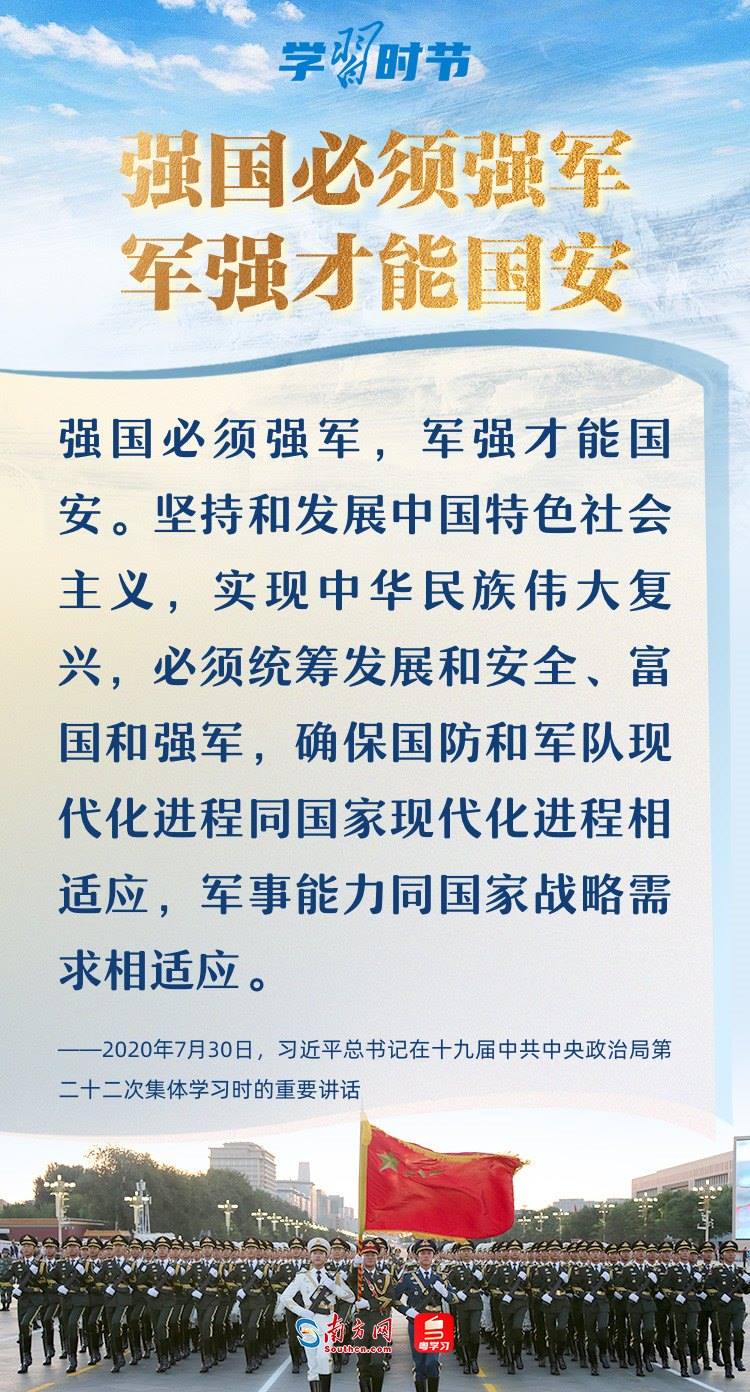 強(qiáng)國(guó)必須強(qiáng)軍,軍強(qiáng)才能國(guó)安。黨的十八大以來,以習(xí)近平同志為核心的黨中央領(lǐng)導(dǎo)軍隊(duì)和國(guó)防建設(shè),開啟強(qiáng)軍興軍新征程,形成了習(xí)近平強(qiáng)軍思想,指引人民軍隊(duì)朝著實(shí)現(xiàn)新時(shí)代強(qiáng)軍目標(biāo)、全面建成世界一流軍隊(duì)奮勇前行。在八一建軍節(jié)到來之際,讓我們一起回顧總書記那些振奮人心的強(qiáng)軍話語(yǔ)。