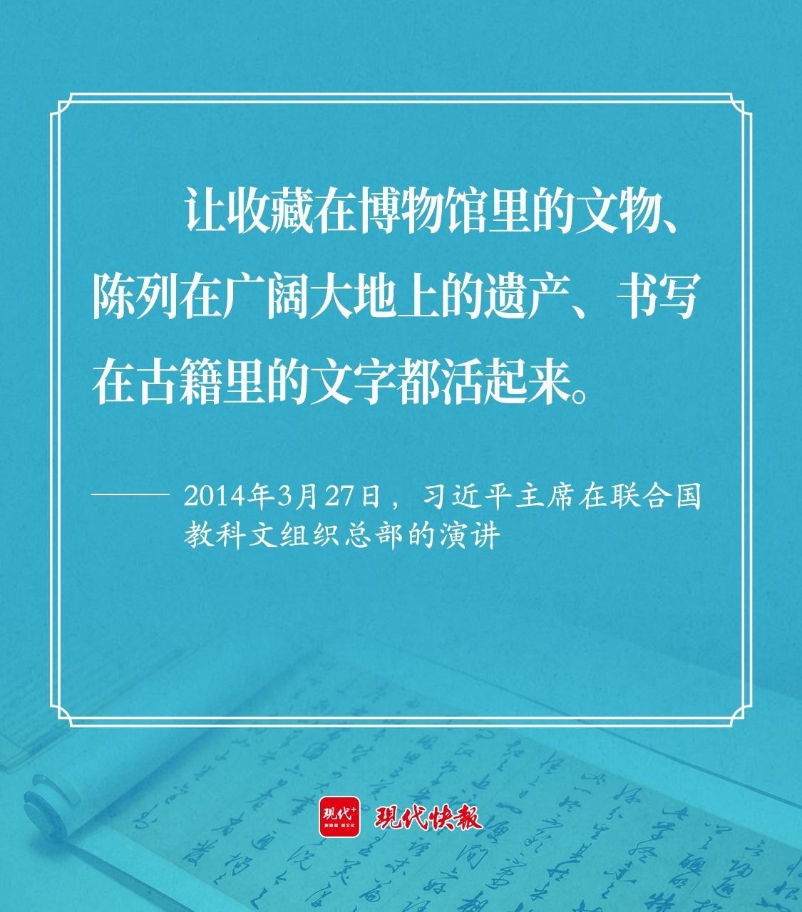 黨的十八大以來,習近平總書記多次強調(diào),要系統(tǒng)梳理傳統(tǒng)文化資源,讓收藏在深宮里的文物、陳列在廣闊大地上的遺產(chǎn)、書寫在古籍里的文字都活起來。